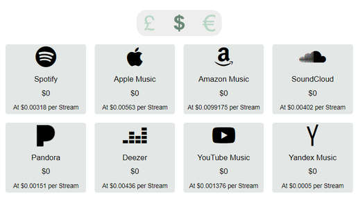 Что такое калькулятор роялти - это онлайн калькуляторы, которые оценят, сколько денег вы заработаете за потоковую передачу своей музыки. Spotify, Apple Music и музыка YouTube предлагают разные суммы за поток. Калькуляторы роялти за потоковую передачу могут быстро дать вам разные оценки для разных потоковых платформ. Эти калькуляторы роялти бесплатны и просты в использовании. Просто выберите сервис потоковой передачи музыки, введите количество потоков, и он подскажет, сколько вы можете заработать...