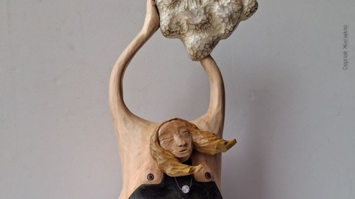 Возможно в этот раз кому-то покажется, что новая арт-кукла выглядит довольно странно. Да, мне нравится экспериментировать в своём творчестве - и с формой, и с содержанием. Частенько размышляю в процессе работы, рисую разные варианты, меняя изначально задуманный образ прямо на ходу. Так случилось и в этот раз. А взять резцы в руки меня побудил набросок с рабочим названием "Тишина". Вдохновленный этим образом, я взял липовое полено и принялся за резьбу. Прошло несколько дней, когда я осознал, что задуманный образ неумолимо меняется...