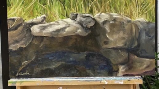 Эта картина у меня получилось после поездки на море. Гуляла по развалинам и вдруг увидела такой невероятно легкий и ярко-красный мак, слегка качающийся в полуденную жару и под ним камень, на котором этом самый мак, каким-то странным образом закрепился...