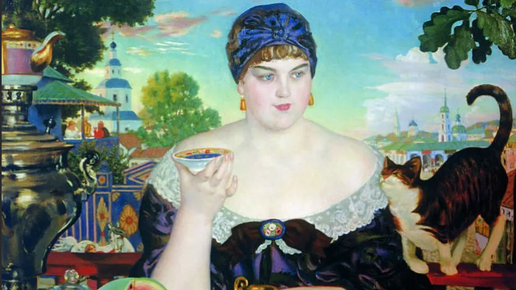 С утра заглянула на тг-канал одного из авторов, что постоянно читаю – Анны Кирьяновой. На вкус, как известно, все фломастеры разные, поэтому не нужно про то, хороший она автор, плохой, нравится-не нравится. Я читаю, меня устраивает. И речь не о ней пойдет, хотя именно на ее страничке увидела небольшую заметку о Кустодиеве и одной из его работ. Вот этой – “Чаепитие в Мытищах”. Очень известная работа. В чем-то она лубок напоминает. Тут и цвета яркие и сочные, ничем не приглушенные, и дама, пьющая чай, что называется «в самом соку», и кошка, что подлизывается, прям чуть ли не мультяшная...
