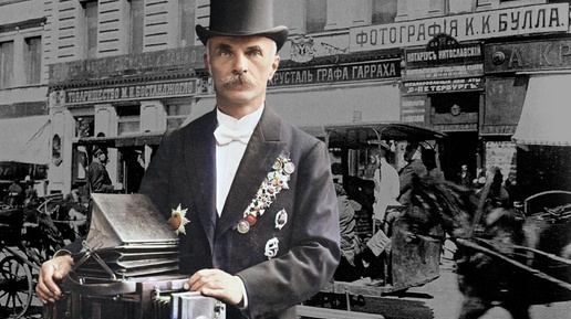 Больше всего он любил Невский проспект — главная улица империи, жизнь кипит! Ради этого вида из окна он проделал полторы тысячи верст из далекой Пруссии; самоотверженно трудился в любую погоду без выходных; творил искусство там, где, кажется, его и быть не могло; соглашался на любые заказы, изобретал технику… И вот, наконец, вершина: целых два этажа дома на Невском носят гордое имя «Фотография К. К. Булла». Увы — триумф великого мастера продолжался недолго. Революция отняла у него фотоателье, двести тридцать тысяч негативов, семью и любимый город на Неве...