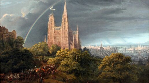 Что получается, когда немецкий архитектор смотрит на средневековую архитектуру (и зачем он это делает) 1. Готический собор на реке / Gotischer Dom am Wasser, 1813 2. Средневековый город на реке / Mittelalterliche Stadt am Fluss, 1815 3. Готическая церковь на утесе / Gotische Kirche auf einem Felsen am Meer, 1815 Автора! А вот и он - Карл Фридрих Шинкель, немецкий архитектор, градостроитель и художник. Он родился в 1781 году и умер в 1841-м, успев построить несколько очень разных зданий: Нойе Вахе,...