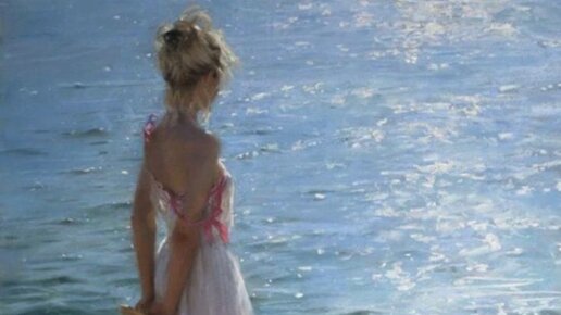 На песчаном берегу, прямо у кромки воды стояла девушка в длинном лёгком сарафане. Лица её не было видно. Русые волосы собраны наверх в незамысловатую причёску, которая, тем не менее, была довольно красива, даже, несмотря на то, что ветер немного её растрепал. Выбившиеся пряди колыхались вокруг головы, подсвеченные отражённым от воды солнцем. В руках, заведённых за спину, барышня держала соломенную шляпку, изящно изогнутую, с широкими полями и белой розой в ленте. Девушка смотрела на море. Море катило волны к её ногам… Издали было непонятно, обута девушка или босая...
