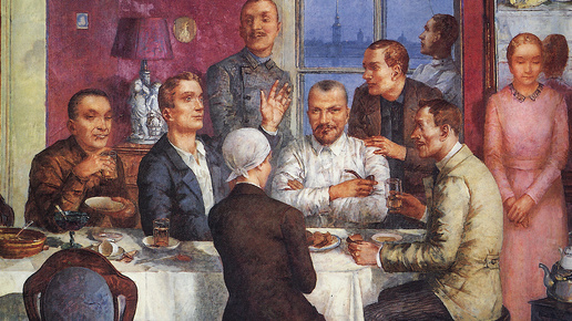 «Простые хорошие люди», — так описывал художник героев картины, отмечающих новоселье. Но на большую выставку в Москве, для которой она была написана, ее так и не взяли, посчитав сюжет двусмысленным. АННА ПОПОВА Ирония судьбы: Кузьме Петрову-Водкину никак не удавалось перенести на холст первоначальный сюжет картины. Художник должен был написать для Всесоюзной выставки «Индустрия социализма» произведение о Гражданской войне. Он хотел изобразить момент, когда из квартиры выселяют старых владельцев, а на их место въезжают новые, советские люди...