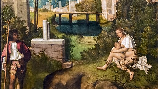 Одной из самых загадочных картин в мире искусств считается картина итальянского живописец, представителя венецианской школы, одного из выдающихся мастеров Высокого Возрождения Джорджо Барбарелли да Кастельфранко, более известного под именем Джорджоне. Это картина "Буря". La tempesta... Буря, шторм, иногда в русском переводе - гроза. Странное, надо сказать, название для такой спокойной, почти пасторальной картины. Ни одно дерево не сгибается под ветром, ни одна травинка не колышется. Неизвестно, как называл картину сам живописец...