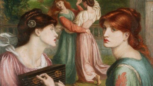 Прерафаэлитов часто называют эстетистами - этакими "поэтами в башне из слоновой кости" от живописи, стремившимися писать исключительно ради "услады глаз". В качестве одного из примеров таких картин "Беседку на лугу" Данте Габриэля Россетти упоминают чаще прочих. Но так ли просто все с этой картиной? На первый взгляд это лирическое полотно на первом плане которого две девушки играют на старинных музыкальных инструментах. Позади них две другие девушки кружатся в танце. А вокруг - идиллический пейзаж нежаркого лета...