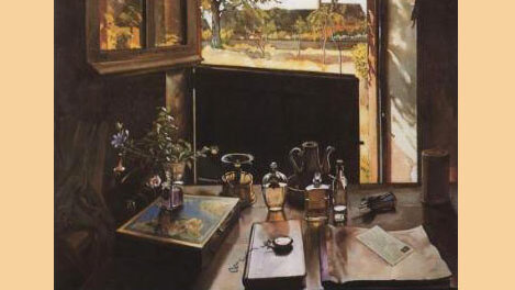 Как удивительна первая картина — в ней и натюрморт, и дверь, и окно, и — даже пейзаж наяву и в отражении) Автор словно распахивает дверь, приглашая зрителя в прекрасный летний день. Более того, как будто приближает пейзаж отражением в окне, создавая ощущение света, природного простора и воздуха. В этой картине словно дверь в весну открывается... И как будто можно пойти по дорожке по весеннему лесу. И ракурс удивительный — на пригорке, поэтому и небо, кажется, что "распахнуто" на весь пейзаж, весенней...