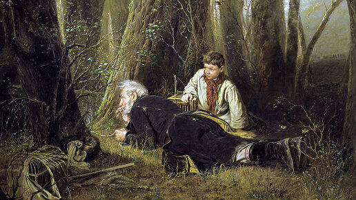 На этой картине мы видим мальчика и мужчину, лежащих на земле в осеннем лесу. Они явно чего-то ждут или кого-то выслеживают. Возле них стоят клетки, значит сюжет связан с птицами. Картина называется «Птицелов». Идея написать её пришла Перову во время прогулки по лесу, где он увидел старика, тихонько свистящего в дудочку и подзывающего птиц. Рядом сидел мальчик, глядя на которого, художник сразу же вспомнил своё детство. Ведь когда-он тоже сидел так и ждал, когда попадётся певчая пташка. В те времена люди часто ловили певчих птиц, чтобы долгими зимними вечерами слушать их красивые трели...