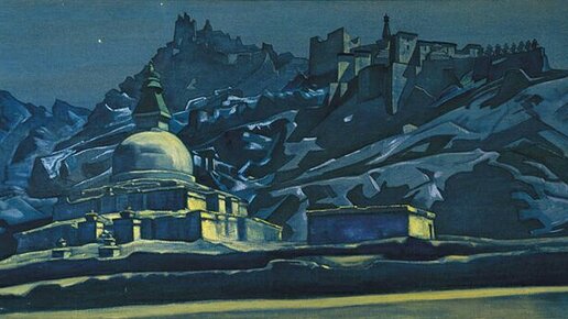 На этой картине изображен ночной пейзаж: склон невысокой горы, на на которой располагается монастырь. Внизу огромная ступа высотой, гораздо больше человеческого роста. Что мы знаем об этом монастыре, что мы знаем об этой ступе, что мы знаем об этом месте? Если бы простой человек посмотрел на этот монастырь, то он бы сказал: «Ну, очередной тибетский монастырь, которых сотни». В принципе да, местность располагается возле Тибета, это Ладакх, постройка выполнена в типично тибетском стиле с плоскими крышами и ступа типично буддистская...