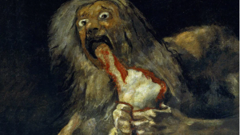 «Сатурн, пожирающий своего сына» — это древний миф о боге хауса Сатурне (Кроносе). Он получил от древнего оракула предсказание, что один из сыновей свергнет его. И, чтобы обмануть судьбу, Сатурн решил убить всех своих детей.
