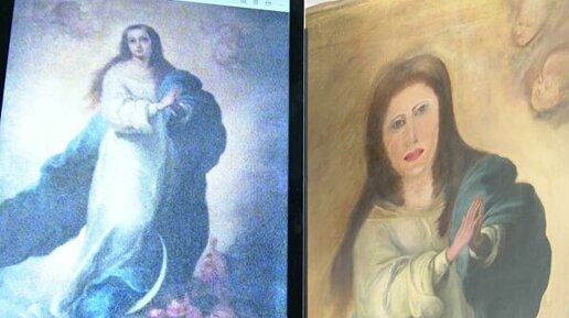 Плохой реставратор изуродовал картину "Непорочное зачатие"