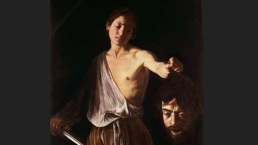 Шедевр Караваджо "Давид с головой Голиафа", созданный художником в 1609-1610 годах, хранится ныне в галерее Боргезе в Риме. Завораживающее полотно, в котором ярко проявлена знаменитая караваджиевская контрастная светотень, показывает момент триумфа Давида, который только что победил своего врага. Однако, лицо героя печально и задумчиво, более того — сострадательно, в нем нет никакого ликования, никакой гордости по поводу победы. Хотя Давид и держит в руке меч, его облик лишен воинственности, он скорее будничен...