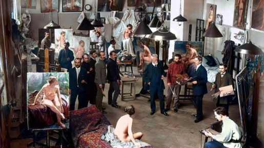 Живописная мастерская профессора В.Е. Маковского. Академия художеств, Петербург. 1913 7 февраля — день рождения художника-передвижника Владимира Егоровича Маковского (1846—1920). Маковский стал свидетелем заката и крушения империи Романовых и одновременного рождения нового мира, и оба этих процесса отразились на его картинах. Это, например, «Ходынка» (1897), катастрофы и гибели людей на картине нет, просто море голов, некоторые лица даже улыбаются. Но не разлито ли предощущение катастрофы в воздухе? Владимир Маковский...