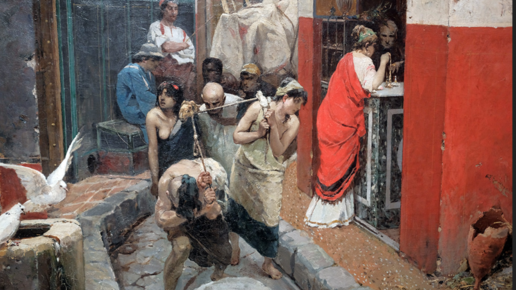 Кем-кем, но древние римляне уж точно не обижены художниками более поздних эпох, которые изображали их жизнь во всех ее проявлениях. Особенно популярны были сюжеты из древнеримской жизни в искусстве XVIII - XIX веков, когда расцвела академическая живопись, и античное искусство было взято за образец. Если эстетические каноны художники заимствовали у греков, то вдохновение они черпали из греческой и римской истории и мифологии. В XIX веке крен в сторону изображения именно реальной жизни античных времен стал очевиден, в то время, как в XVIII веке больший интерес вызывала мифология...