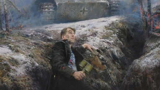 Я много раз говорил о художниках, которые в своих полотнах изображают сюжеты, посвященные подвигу бойцов на войне. Эти картины сегодня составляют одну из значительных частей всего изобразительного искусства - это, действительно, выдающиеся работы! И сегодня я хотел бы поговорить о еще одной картине, о которой в комментариях под статьями канала писал один из уважаемых подписчиков. Что за полотно, кто его автор - сейчас поговорим, друзья! Перед Вами картина современного художника, члена Союза художников...