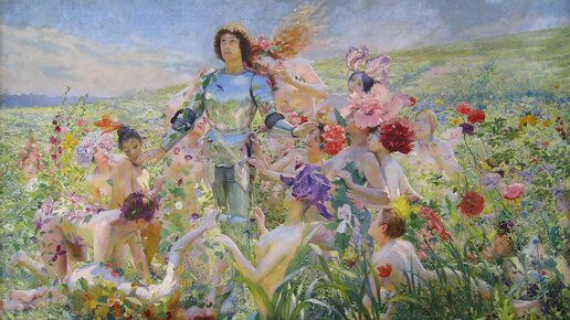 Некоторые картины существуют только для того, чтобы ими восхищались. Так обстоит дело с картиной "Рыцарь цветов" французского художника, одного из наиболее оригинальных и самобытных живописцев своего времени, Жоржа Рошгросса. Картина настолько прекрасна, что хочется ею просто любоваться и не искать никаких смыслов. Рошгросс использует очень мягкую палитру цветов, изображая на картине сад с цветами. Небо тоже имеет пастельные тона. Мазки мягкие, расплывчатые. Картина чем-то похожа на импрессионизм, особенно в пейзаже...