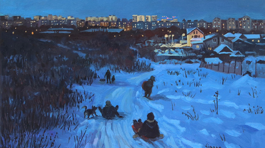 Катание с горок, картины Светланы Симоненко