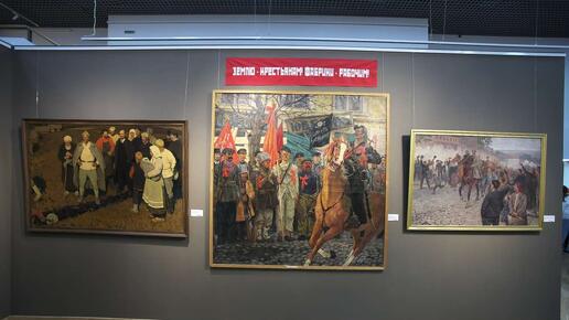 До 9 ноября в музее Крамского проходит атмосферная выставка «СССР. Вехи большой страны» (0+). В нее вошли живописные полотна и плакаты советских художников из собрания музея, созданных в период 1920-х-1990-х годов. Всего – около 70 работ. Экспозиция выстроена в хронологическом порядке. Все начинается с Октябрьской революции 1917 года и заканчивается эпохой перестройки. Основные разделы выставки как бы «озвучивают» написанные на красных полотнищах лозунги: «Землю – крестьянам, фабрики – рабочим!», «Свобода, равенство, братство!», «Слава народу-победителю!», «Слава труду!»...