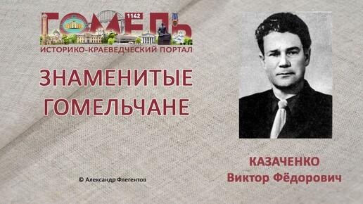 Виктор Фёдорович Казаченко (01.05.1918, Гомель — 27.02.1998, Гомель) — белорусский живописец. Кандидат в члены Союза Художников БССР (1948). Родился в семье рабочего ВРЗ в Гомеле. Учился в художественных студиях у Б. Звиногродского и А. Шевченко в Гомеле (1935-1940), Гомельском педагогическом институте им. Чкалова (1939-1941). Посещал студию изобразительного искусства при ДК железнодорожников им. В.И. Ленина. В 1940 году был принят вольным слушателем в Ленинградскую Академию художеств СССР....