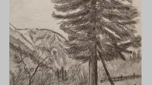 Художник, Степан Каширин. "Кедр".(30x20см.) Бумага, карандаш.1991г.