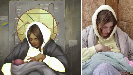 Вспомнили, какие еще есть известные картины с «военными мадоннами» Рисунок под названием «Киевская мадонна» опубликовал на своей странице в соцсети католический монах иезуит Вячеслав Окунь. Автор картины пока не известен. Предполагают, что ее срисовали с фото девушки с младенцем, которая прячется от бомб, и добавили в качестве «нимба» схему движения поездов Киевского метрополитена. С началом войны России против Украины многим женщинам пришлось рожать, находясь в метро и подвалах, которые используются как бомбоубежища...