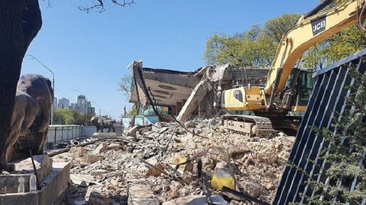 23 апреля в Киеве, на проспекте Победы, бульдозеры начали сносить старый вход в знаменитый Киевский зоопарк. Техника работала целый день — по предварительным данным, работа будет продолжаться в течение следующих двух недель. Известно, что бульдозеры уже снесли модернистскую входную группу зоопарка — бронзовые скульптуры львов и бизона планируют заменить на новые. Указано, что демонтаж проходит в рамках масштабной реконструкции зоопарка стоимостью 802,9 млн гривен. Новую входную группу откроют с другой стороны зоопарка — на улице Зоологической...