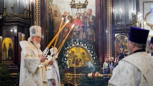 Патриарх Кирилл начал рождественскую службу в храме Христа Спасителя