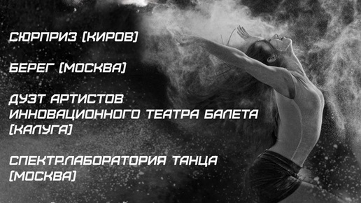 Москва Проект «ВДОХ» приглашает встретить весну в компании современного танца! 1 марта 2026 в 18:00 на сцене Культурного центра "Вдохновение" соберутся настоящие амбассадоры хореографического искусства В программе 6 уникальных спектаклей, такое нельзя пропустить! УЧАСТНИКИ ЧЕТВЕРТОГО ВЕЧЕРА ХОРЕОГАФИЧЕСКИХ СПЕКТАКЛЕЙ: • Танцевальная компания берег (Москва) • Дуэт артистов Инновационного тетра балета (Калуга) • Театр танца "Сюрприз" (Киров) • Компания современного танца "Данс Ленд Клаб" (Липецк) • Спектр...