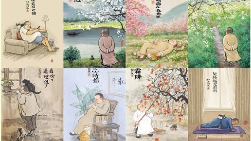 Китайский художник-иллюстратор Гусу Ацзяо (姑苏阿焦) рисует жанровые сценки из жизни с котом. На его картинах - обычные каждодневные дела, но изображенные с юмором и китайским колоритом. «Гусу Ацзяо» — художник, родившийся после 70-х годов, настоящее имя которого — Цзяо Дяньи. Он родился в Ляньюньгане, окончил Сучжоускую академию искусств и дизайна и живёт в Сучжоу уже более двадцати лет. Он иллюстрировал несколько журналов, включая «Reader» и «Senior Citizens' Expo», а в настоящее время является членом Ассоциации народных художников Сучжоу...