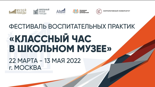 Москва - Ветеранские вести. Музей Победы 22 марта дал старт фестивалю воспитательных практик «Классный час в школьном музее». Планируется, что в нем примут участие более 1000 педагогов и школьников Москвы. Фестиваль пройдет в рамках программы «Школьный музей Победы». Конкурсанты представят лучшие практики использования ресурса школьного музея для воспитания подрастающего поколения. Видеоматериалы, подготовленные по итогам проведенных занятий, будут размещены на сайте программы «Школьный музей Победы» schoolvictorymuseum...