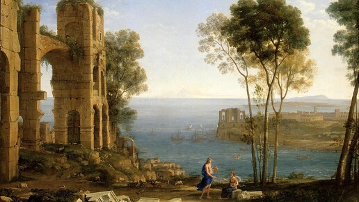 9Клод Лоррен (1600 — 1682) — французский художник, наиболее известный как один из величайших мастеров идеальной пейзажной живописи, вида искусства, который стремится представить природу более красивой и гармоничной, чем сама природа. Качество этой красоты определяется классическими представлениями, и в пейзаже часто встречаются классические руины и пасторальные фигуры в классических одеждах. Источником вдохновения является сельская местность вокруг Рима — Римская Кампанья — сельская местность, полная руин и ассоциаций с древностью...