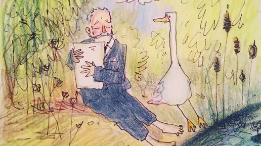 Клод Моне сидит на берегу пруда рядом с Гусем. Клод обнимает одну из своих картин, а Гусь смотрит. На пруду качаются кувшинки. 👨‍🎨🌾🪿🌊🪷 Вот и Сам Клод. Вот его кувшинки: Знаменитая картина «Восход солнца. Впечатление»: Портрет семьи Моне (Клод, Камилла и Жан)...
