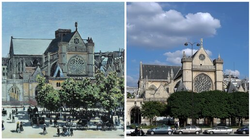 Гениальный французский импрессионист писал лишь то, что видел своими глазами. Лишь настоящая природа, люди, места и сцены. Современники не сразу оценили его идеи запечатлевать реальность, не сразу поняли его талант. Но сейчас картины Моне стоят бешеных денег и приносят зрителям колоссальное удовольствие! А мы открыли для себя ещё одно удовольствие - находить реальные виды тех мест, которые изображал художник. Приглашаем и вас в это маленькое путешествие по следам Клода Моне! 1. Сен-Жермен-л’Осеруа, красивая средневековая церковь в центре Парижа...