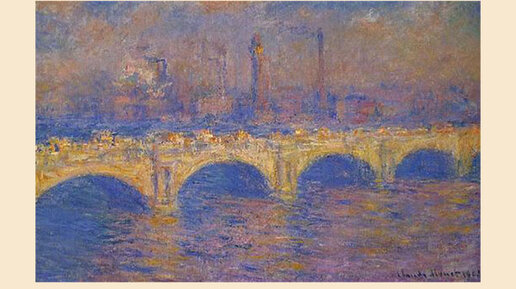 И снова картины Клода Моне. Сегодня – наполненные золотым сиянием. И в первых трёх картинах с мостом он неизменно в золотом окружении. Сам или в окружении золотого сияния вод – каждая из картин очаровывает своим золотым сиянием. И следующая картина – как будто в созданном автором золотом ореоле. Подчеркивая золотым свечением золотое звучание самого момента, рукоделию посвященному. И золотой отсвет в этой картине придаёт силуэтам бронзовое звучание, наполняет картину и светом и свечением. И кувшинки – в золотом ореоле заходящего солнца представлены...