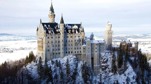 Замок Нойшванштайн, Германия. Это одна из главных достопримечательностей Баварии. Замок построен в Баварских Альпах, на скале высотой 92 метра. Это один из самых известных замков Людвига II Баварского