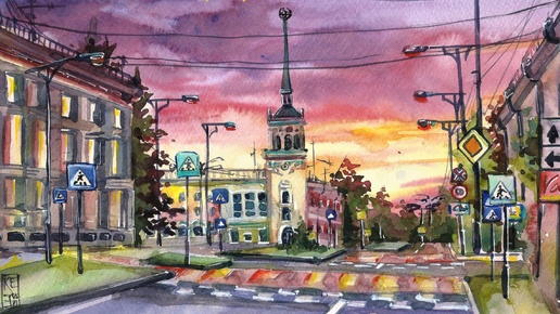 В 2021 году я начала вести мастер-классы по рисованию для взрослых. В тот же год мы нарисовали романтичный сюжет с Ангарской площадью, которую я готовила для выставки в художественном Центре. Самое яркое воспоминание того дня: дорожные знаки и провода))) Люди спрашивали, зачем я их нарисовала, ведь они добавили много мелкой работы . Позже, когда я напечатала открытки с этим рисунком, то же самое слышала от покупателей...