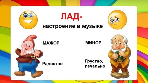 Музыкально-дидактическая игра «Мажор и минор» Здравствуйте, ребята! Мы с вами сегодня снова будем говорить об удивительном мире Музыки. Но сначала у меня к вам будет один вопрос. И я очень хочу поскорей услышать ваши ответы. Ребята, скажите какое настроение у вас сегодня? (ответы учащихся). Да, вижу, в основном вы все сегодня проснулись в прекрасном настроении и готовы получать знания! Но есть среди вас и те, у кого настроение немного грустное. И это неудивительно, ведь мы все разные люди и у каждого...