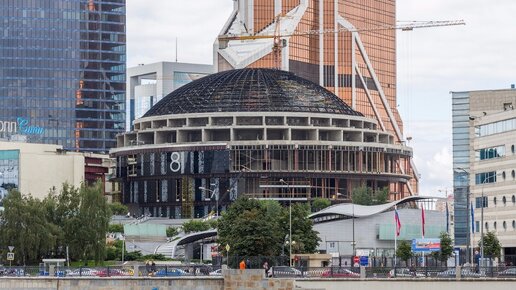 Необычное, круглое по форме здание — будущий концертный зал Сити.