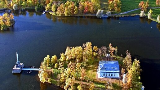 Большой Царскосельский пруд: белоснежный паром, гондола, Чесменская колонна и Зал на Островý.