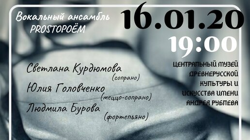 Просто_поём6 лет назадПодписатьсяКонцерт в музее Рублева16 января в 19:00, исполняем произведение Дж. Б. Перголези «Stabat Mater». Сводный состав преподавателей и учеников!