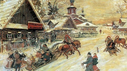 Константин Коровин в 1930-е годы уже жил в эмиграции, но по памяти создал ряд живописных сцен народной жизни. На полотне «Праздничные гуляния» отражены общие впечатления от колорита Масленицы: танцы, музыка и шумная толпа, светлая зимняя палитра. Коровин продолжал развивать свой узнаваемый живописный язык — свободную импрессионистскую манеру, в которой главную роль играют свет, цвет и ощущение движения. Так и на полотне он передает не столько конкретный эпизод Масленицы, сколько общее эмоциональное впечатление от народного праздника...