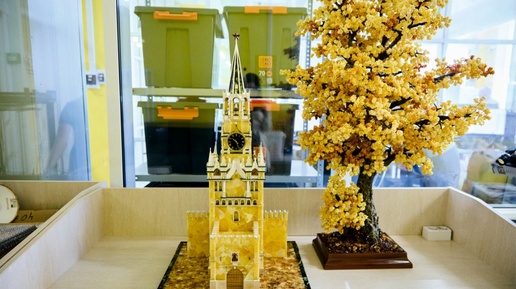 С 31 июля по 3 августа на ВДНХ можно будет посмотреть на копию Спасской башни Московского Кремля из янтаря. На Калининградском янтарном комбинате Госкорпорации Ростех была изготовлена копия Спасской башни в масштабе 1:100. Этот шедевр из солнечного камня собрали из полутора тысяч фрагментов. Высота изделия – 71 см. Вес – около 9 кг. Техника - мозаика. Каждый фрагмент будущей копии главной кремлевской башни подгоняли под соседний вручную, а на изготовление этой красавицы ушло 5 месяцев и 17 килограмм первосортного матового янтаря...
