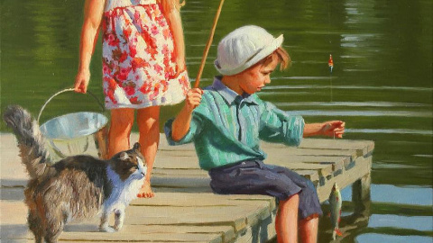 Вот и наступило календарное лето. После долгой, робкой весны, когда солнце то выглядывало из-за облаков, то пряталось, словно играя в прятки, оно ворвалось в нашу жизнь ярким, дерзким лучом. Воздух наполнился ароматом цветущей липы и нагретого асфальта, а птицы заливаются звонкими трелями, словно соревнуясь друг с другом. Но сегодня моя публикация посвящена не только красоте лета, но и теме котов и рыбалки в живописи разных художников. Коты и рыбалка – сочетание, которое вызывает улыбку и умиление...