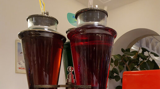 Есть автомат с газированной водой, как в СССР. Предполагаю, что неоригинальный. Продается Дюшес, Барбарис, с каким сиропом вы предпочитаете?