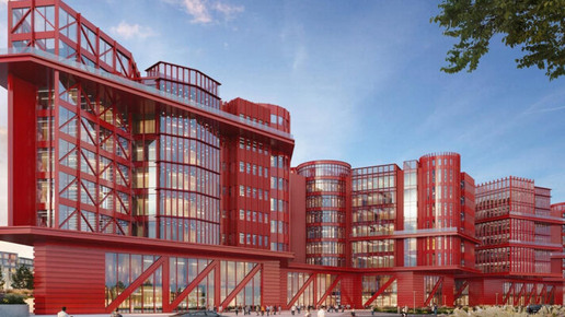 Комплекс общей площадью 110 тыс. кв. м обещают открыть к 2029-му. В нем будут готовить специалистов сразу по полусотне направлений — в области транспорта, информационных технологий, строительства, финансов и т. д. (видимо, проще перечислить направления, которых в новом кластере не будет). Рассчитан этот новый колледж сразу на 16 620 учащихся. Ярко-красное оформление фасадов с обилием стекла и вынесенных внешних вертикалей и диагоналей вроде как привязано к дизайн-проекту соседнего депозитарно-выставочного...