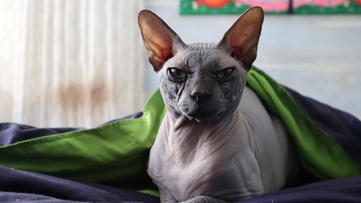 Сфинкс – собирательный термин. Он включает сразу несколько пород кошек, у которых полностью отсутствует шерстяной покров.