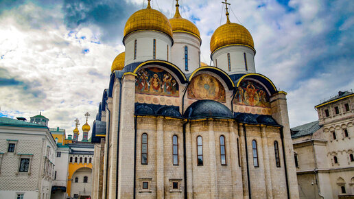 Доброго времени суток! Сегодня мы переместимся в Москву и рассмотрим изнутри Успенский собор,который спустя века продолжает привлекать к себе взгляды туристов и местных жителей. Начиная осмотр внешнего облика собора, сразу бросаются в глаза росписи в полусводах храма и купола, покрытые медными позолоченными листами. Росписи, которые мы с вами видим относятся еще к 16 веку,но они идеально сохранились до наших дней. С южной стороны мы можем наблюдать фрески с образами Владимирской Богоматери, архангелов Гавриила и Михаила...