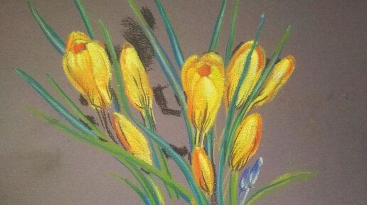 Крокус или Шафран золотистый. Рисование сухой пастелью