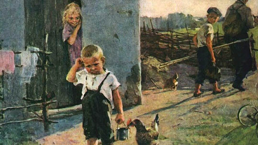 Такая трагикомичная картина! Горе, обида, отчаянье маленького человека – они ведь неподдельные, самые настоящие. Ему на самом деле больно! А девчонка – сестра наверное – еще и смеется. Батька взял с собой только самого старшего. Это несправедливо, нечестно! Старший брат идет, оглядывается: понимает, что братишка расстроен. Босоногий малыш глотает слезы. Так нам тебя жалко, но всему свое время, деточка. Тем не менее картина, совсем не кажется печальной...