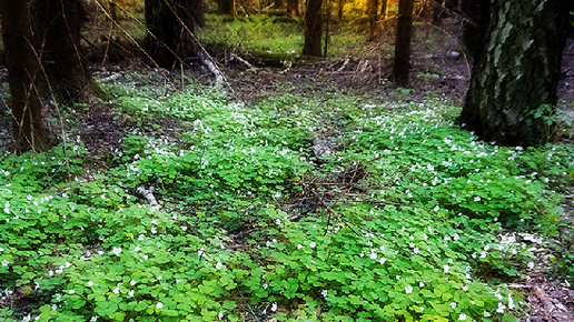 Есть такое замечательное растение, которое наши поселковые ребятишки знают с детства, потому что оно вкусное. Ребятня ест и листья, и цветочки. Народное название этого растения – заячья капуста. Другое же название – кислица. Недавно мы ходили за грибами, а поскольку дождей на севере, кроме одного очень хорошего ливня, нет как нет, то и пошли мы проверить сырой еловый лес. Авось повезет! Об этом я писал вот тут: И вот, представьте, находимся мы на опушке елового леса. Здесь под кроной елей стоит густая тень...